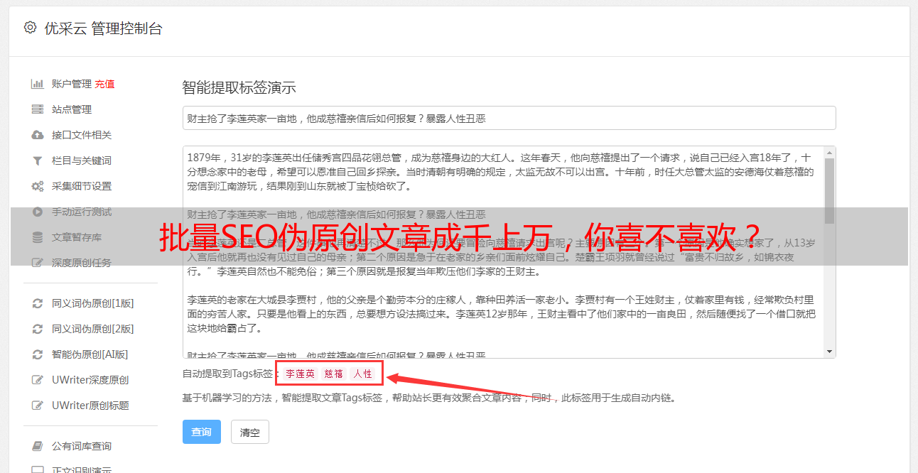 优采云 发布时间: 2021-03-26 05:20批量SEO伪原创文章成千上万,你喜不喜欢?