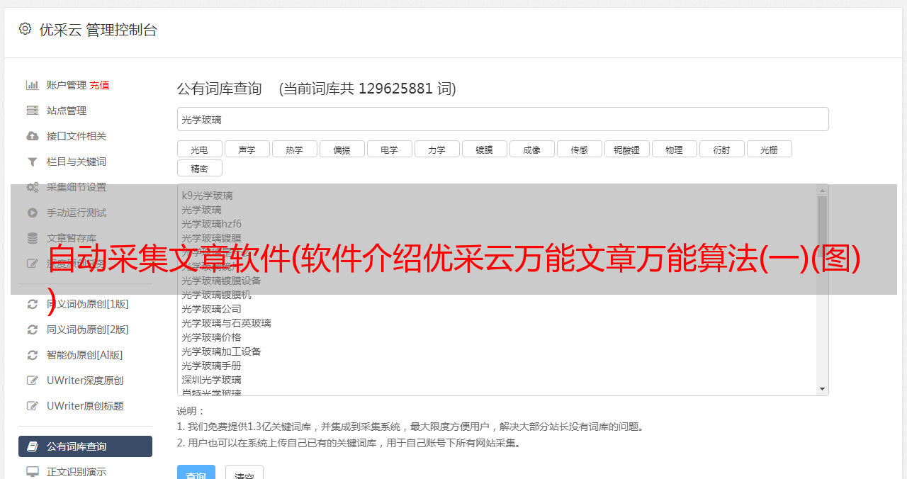 优采云 发布时间: 2021-11-08 03:04自动采集文章软件(软件介绍优采云万能文章万能算法(一)(图)