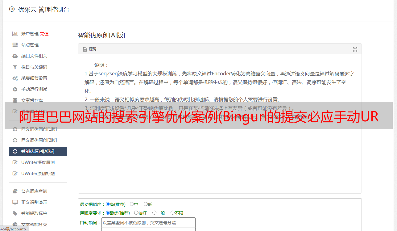 优采云 发布时间: 2021-11-08 05:08阿里巴巴网站的搜索引擎优化案例(Bingurl的提交必应手动URL功能来提升网页收录率)