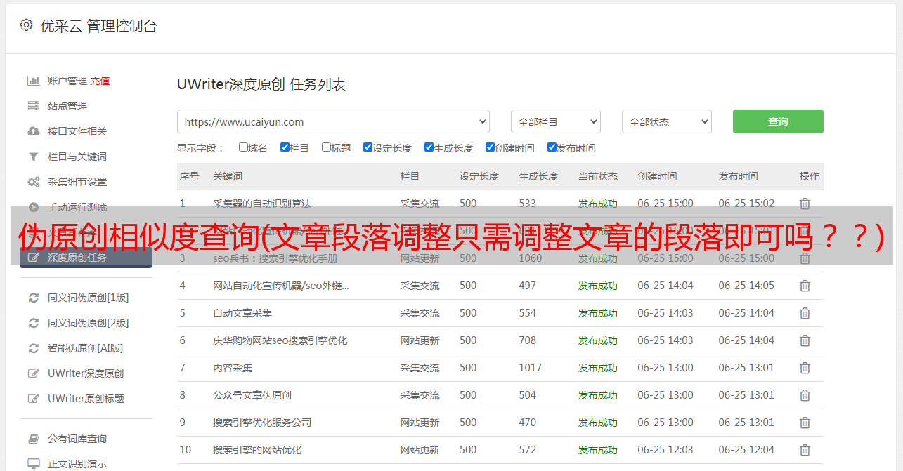 优采云 发布时间: 2021-11-08 12:04伪原创相似度查询(文章段落调整只需调整文章的段落即可吗??)