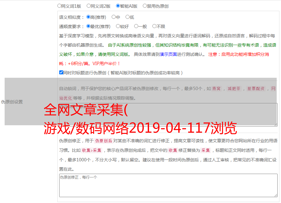 如果只用原文的排版,你过来文章采集后,就【替换文字和图片】。