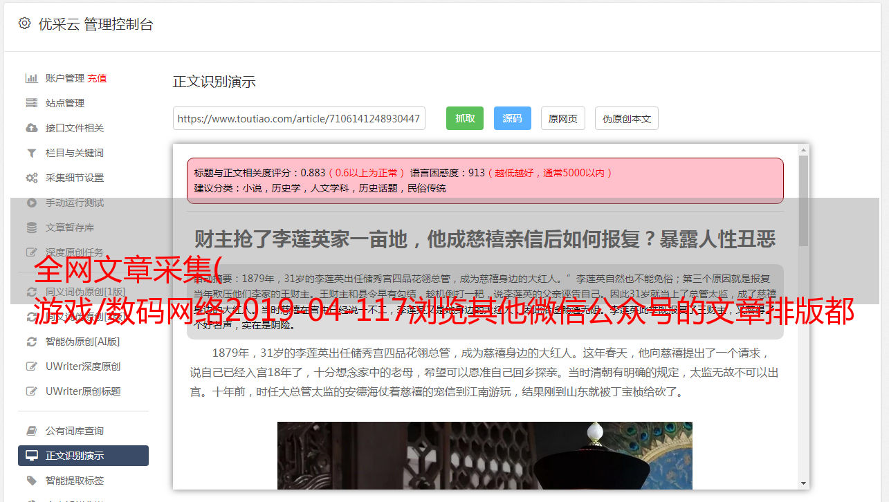 将文章采集放入编辑区后,我们就可以进行后续的修改和排版了。