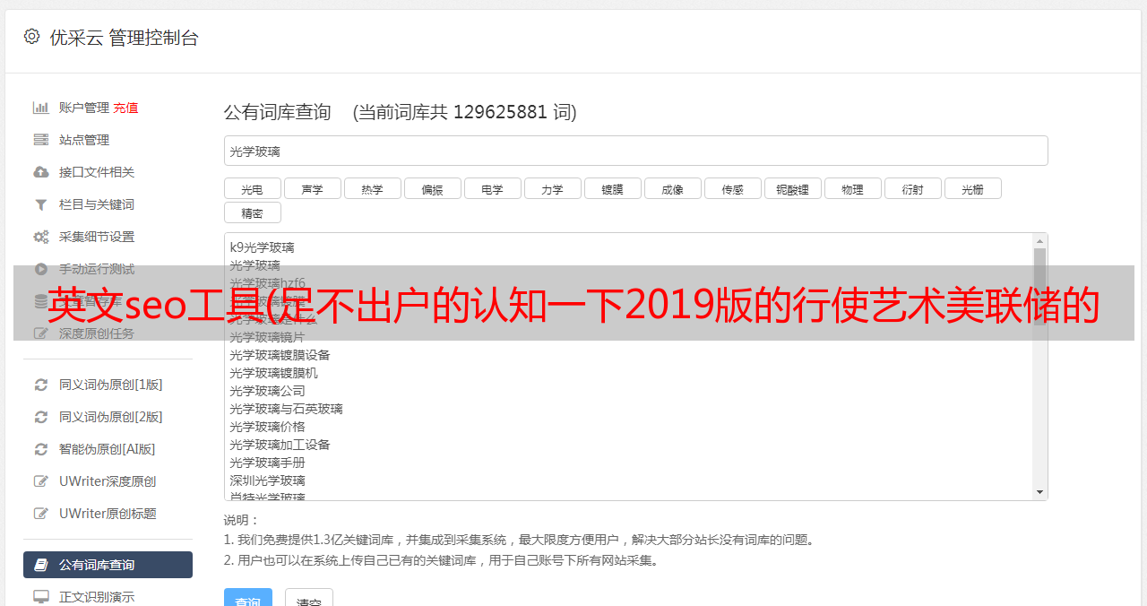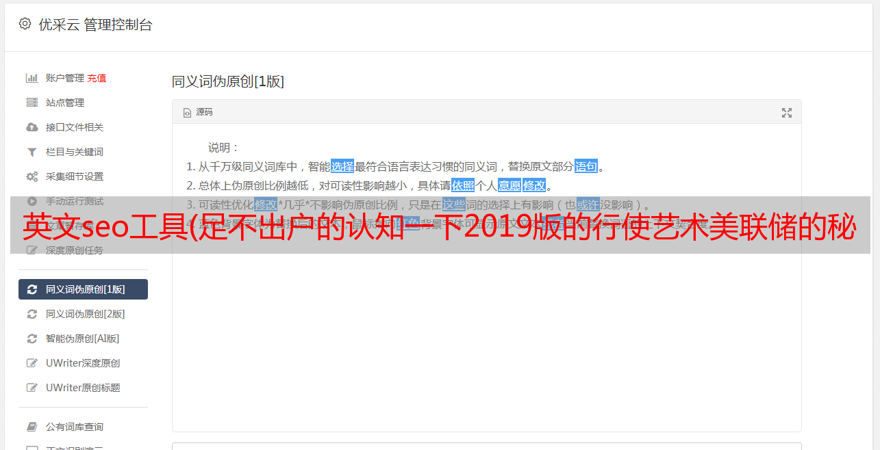 优采云 发布时间: 2021-11-08 22:25英文seo工具(足不出户的认知一下2019版的行使艺术美联储的秘密中文版)