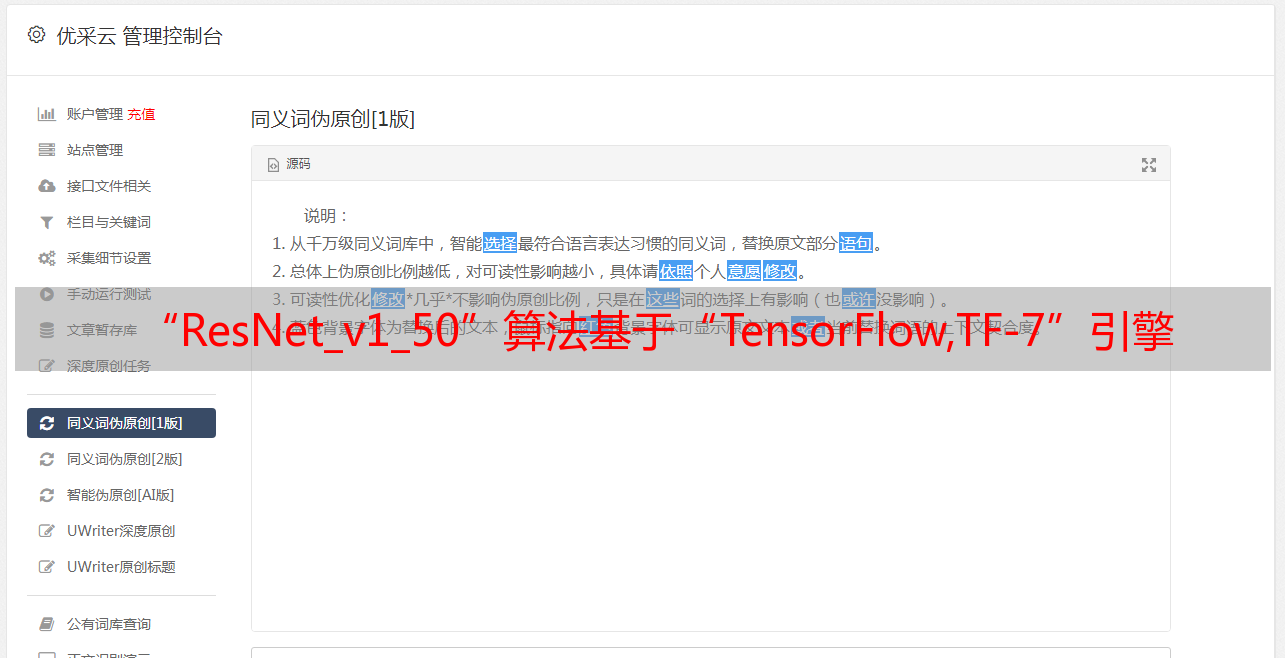优采云 发布时间: 2021-03-27 01:28“ResNet_v1_50”算法基于“TensorFlow,TF-7”引擎