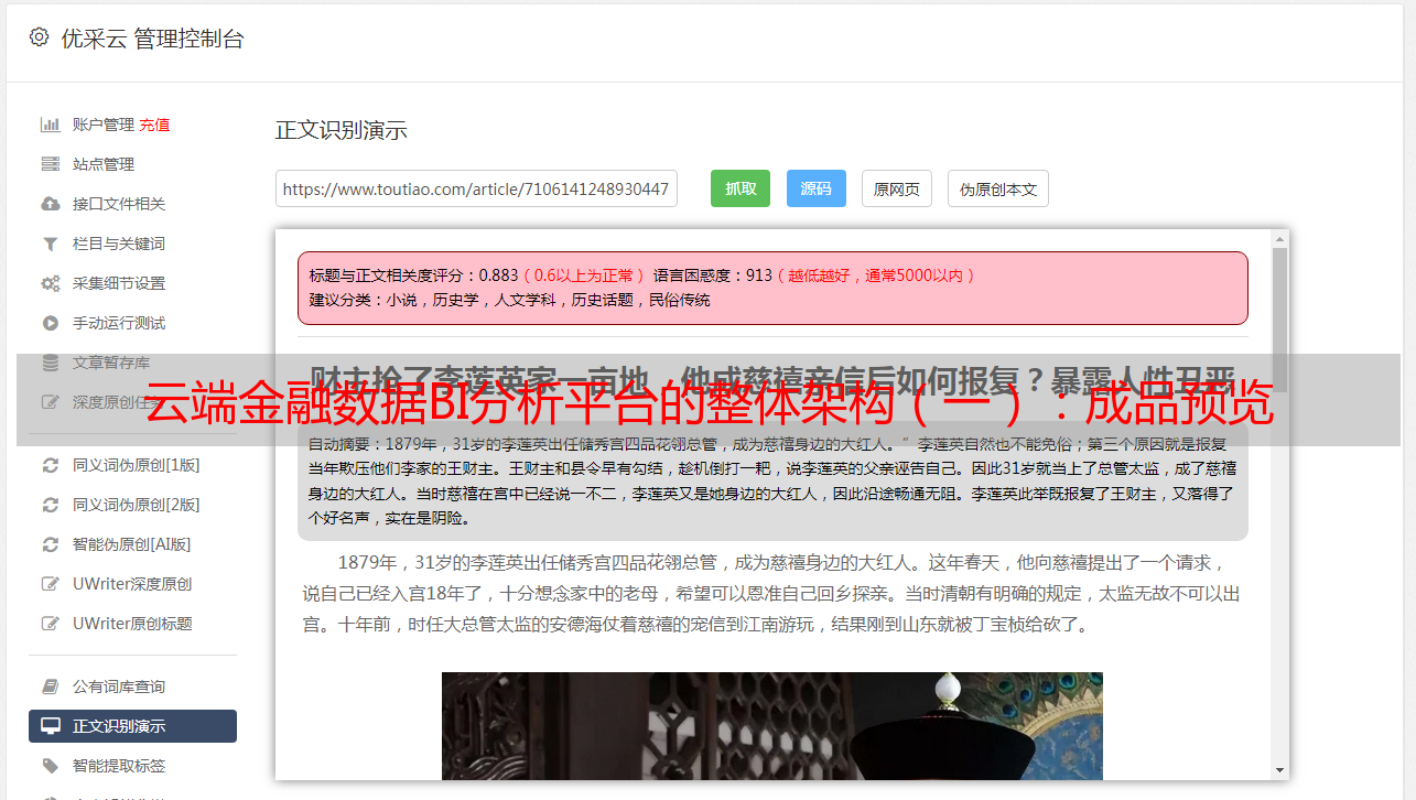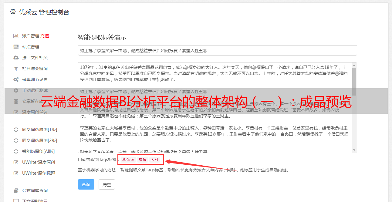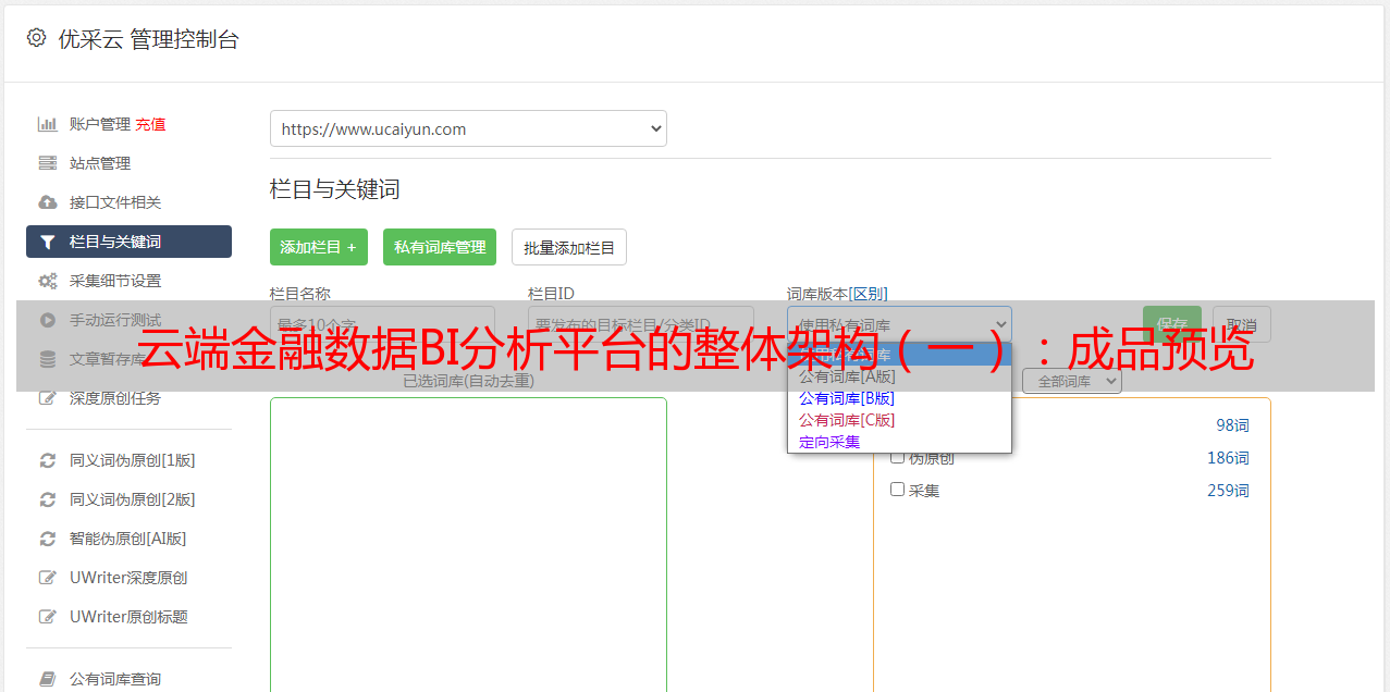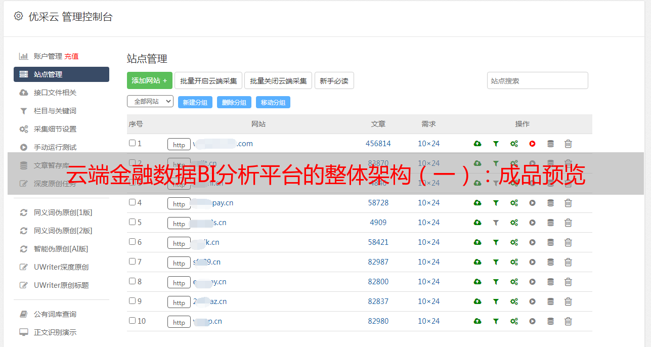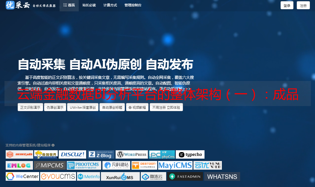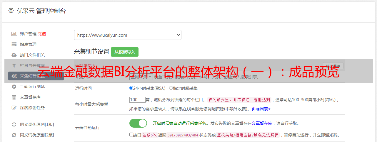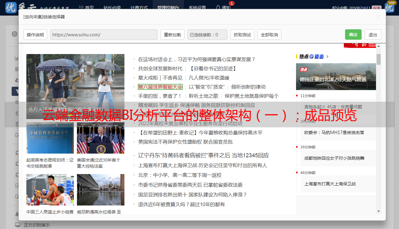 优采云 发布时间: 2021-03-27 01:46云端金融数据BI分析平台的整体架构(一):成品预览