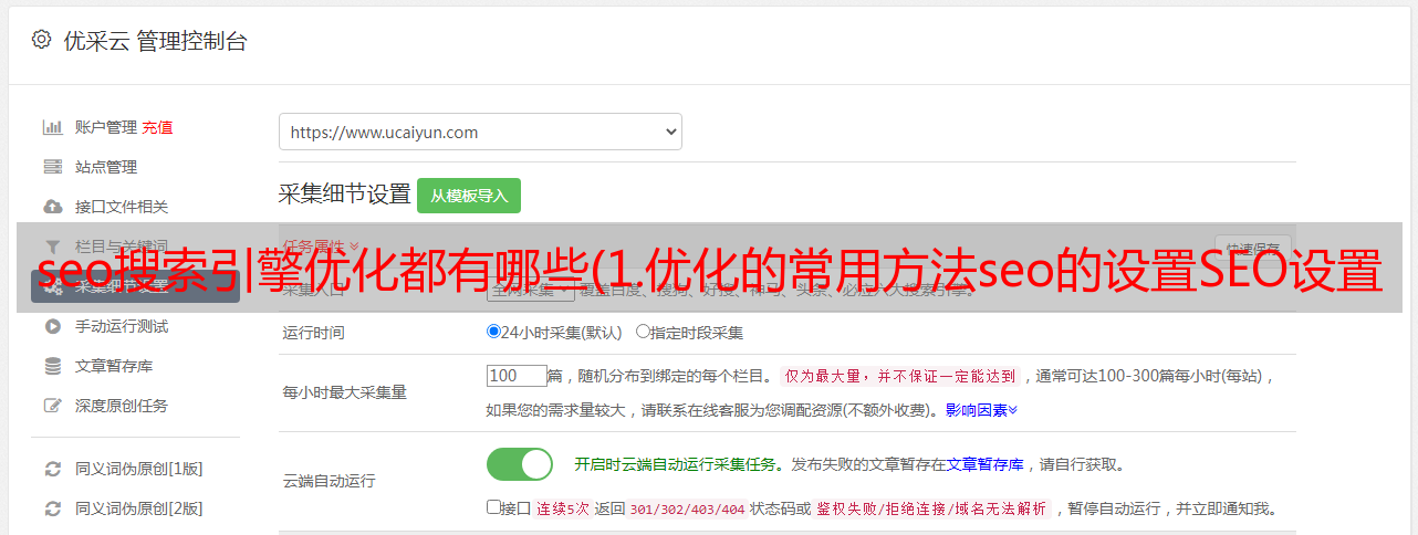 优采云 发布时间: 2021-11-09 00:24seo搜索引擎优化都有哪些(1.优化的常用方法seo的设置SEO设置中三个)