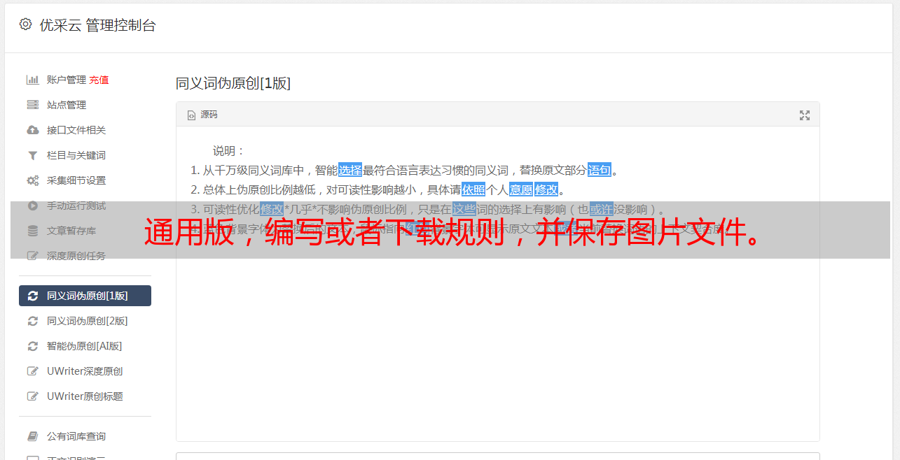 优采云 发布时间: 2021-03-27 02:23通用版,编写或者下载规则,并保存图片文件。