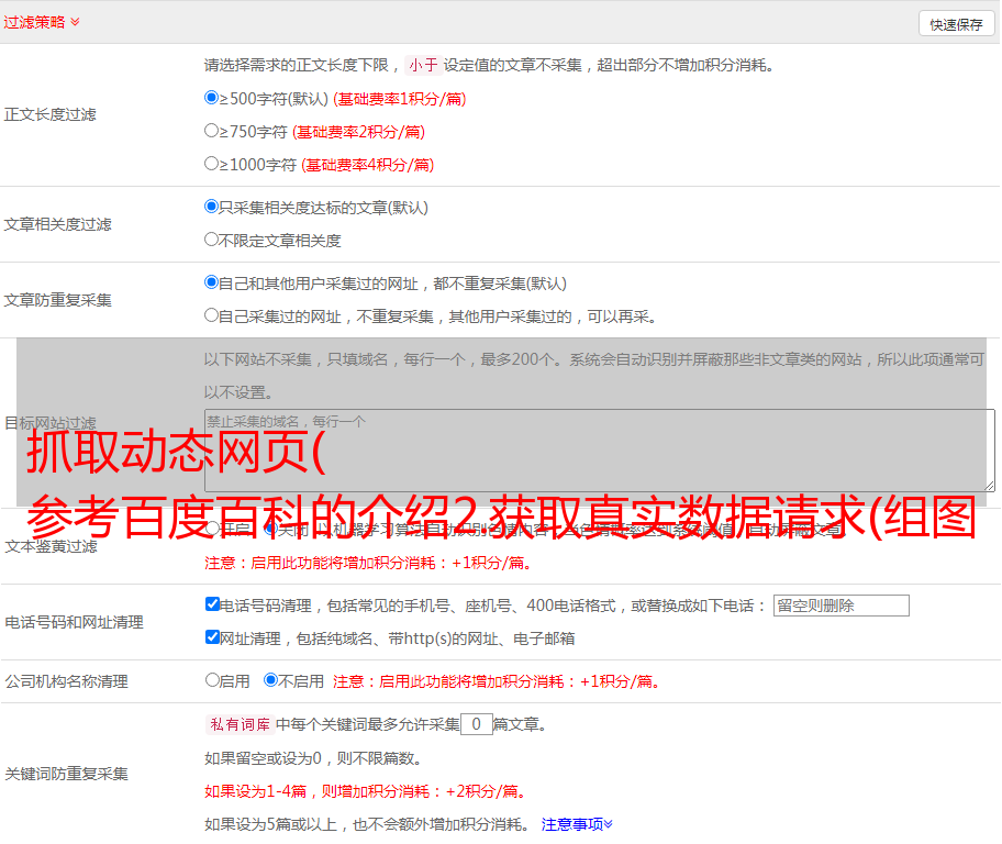 您可以使用嗅探。我们以天然或人造线或纤维为关键词,填写网页采集器的内容过滤器: