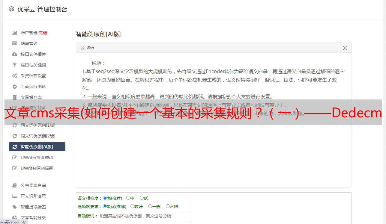 优采云 发布时间: 2021-11-09 07:14文章cms采集(如何创建一个基本的采集规则?(一)——Dedecms)
