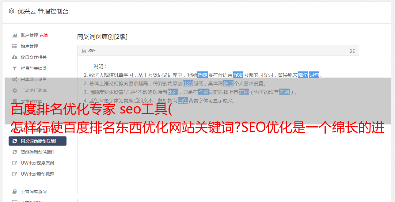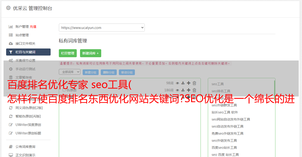 优采云 发布时间: 2021-11-09 19:19百度排名优化专家 seo工具(