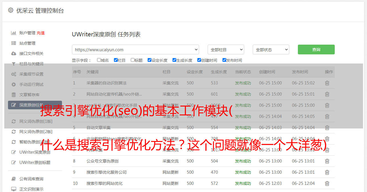优采云 发布时间: 2021-11-09 22:01搜索引擎优化(seo)的基本工作模块(