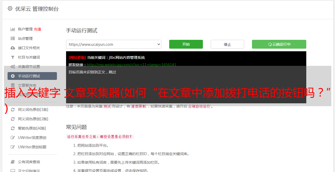 但是有些用户在使用文章采集功能时遇到了一些问题,比如: