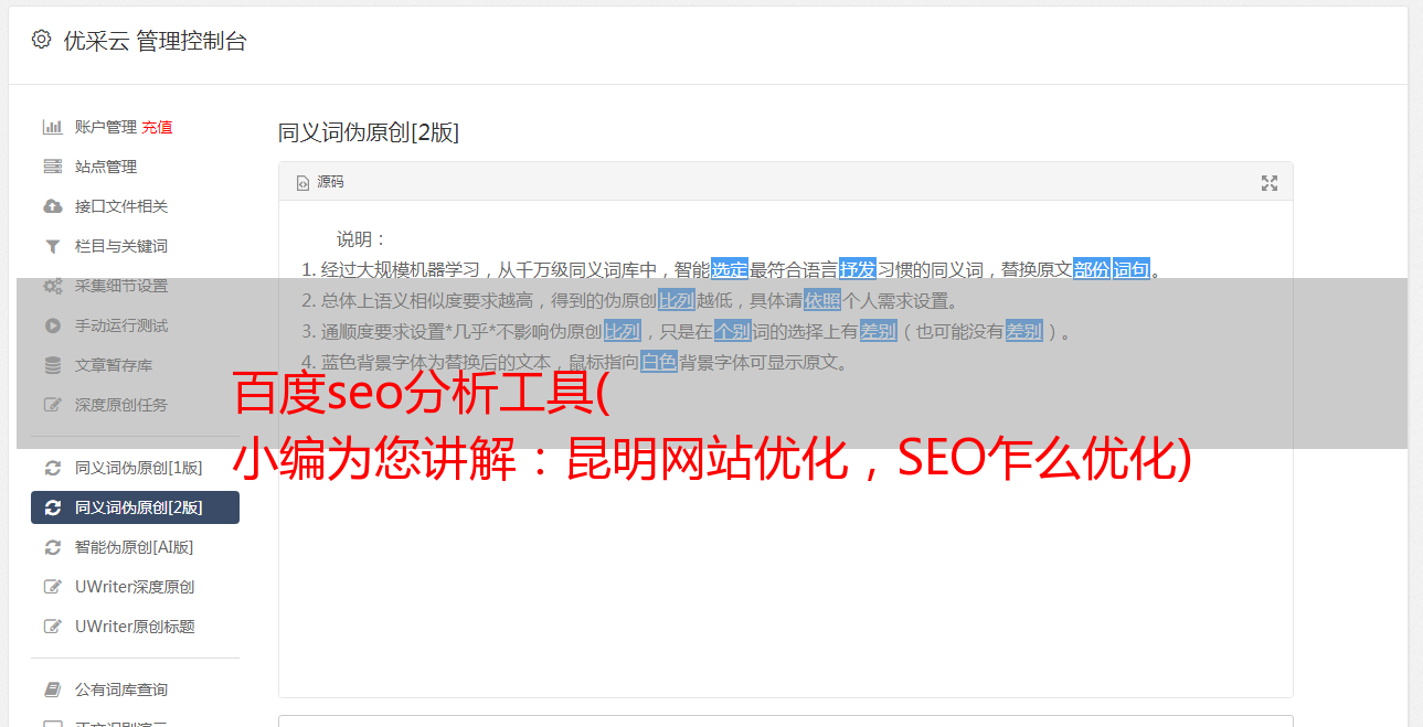 百度seo分析工具( 小编为您讲解:昆明网站优化,SEO乍么优化)