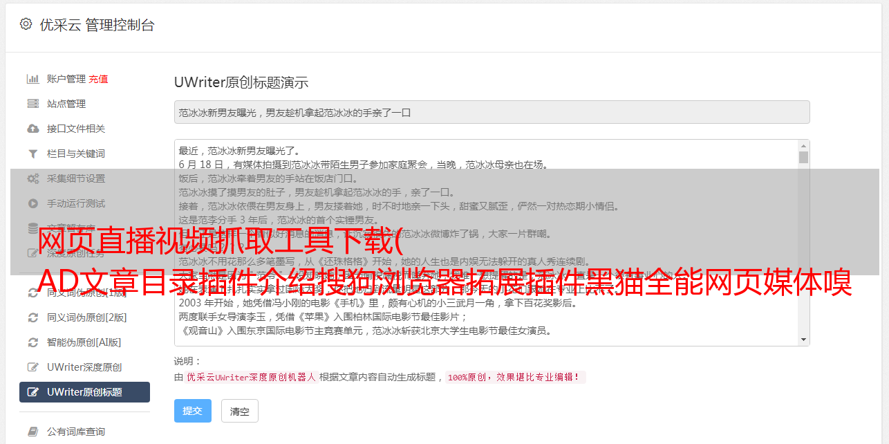 网页直播视频抓取工具下载( AD文章目录插件介绍搜狗浏览器拓展插件黑猫全能网页媒体嗅探工具)