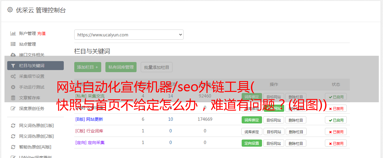 网站自动化宣传机器/seo外链工具( 快照与首页不给定怎么办,难道有问题?(组图))