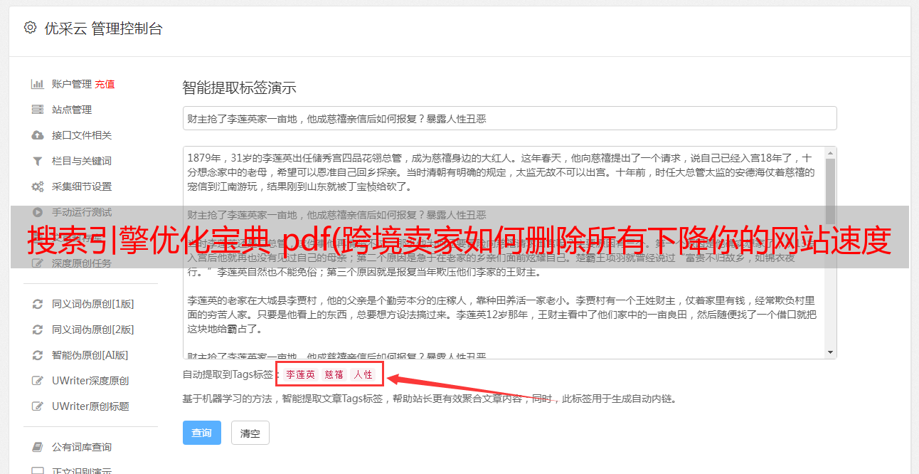 优采云 发布时间: 2021-11-10 14:04搜索引擎优化宝典 pdf(跨境卖家如何删除所有下降你的网站速度的内容?)