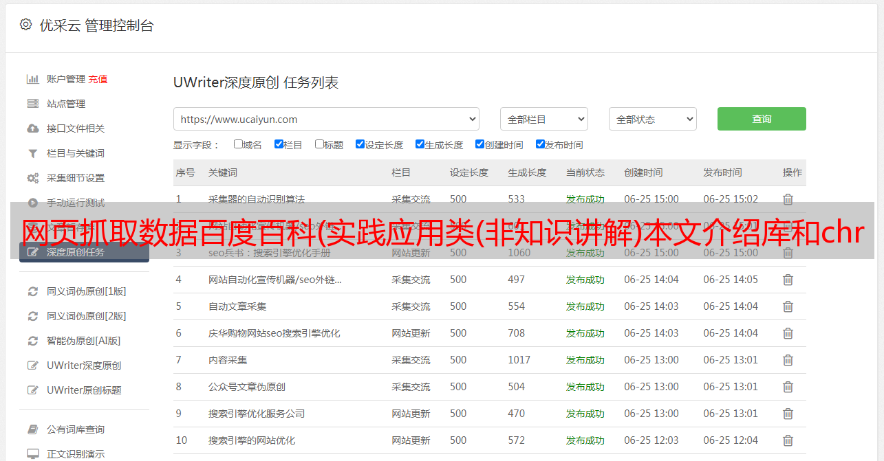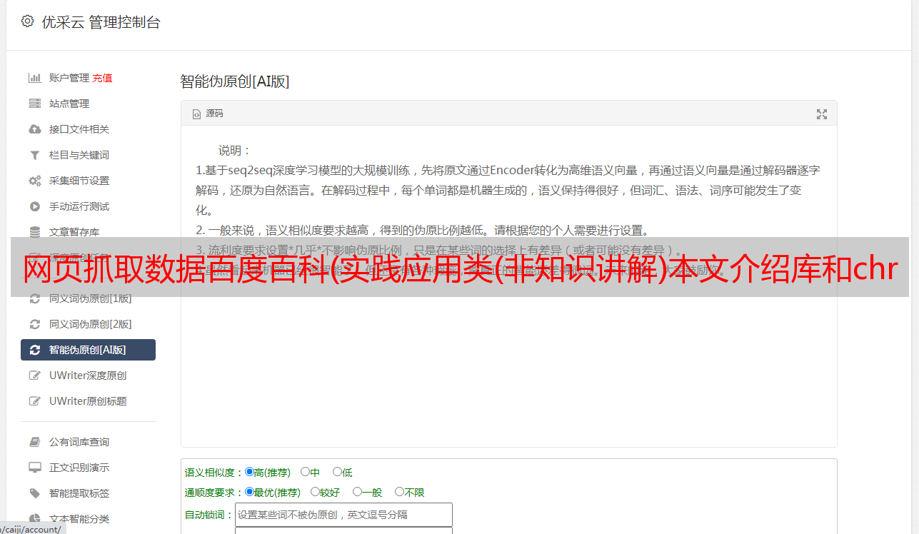优采云 发布时间: 2021-11-10 14:14网页抓取数据百度百科(实践应用类(非知识讲解)本文介绍库和chrome浏览器)