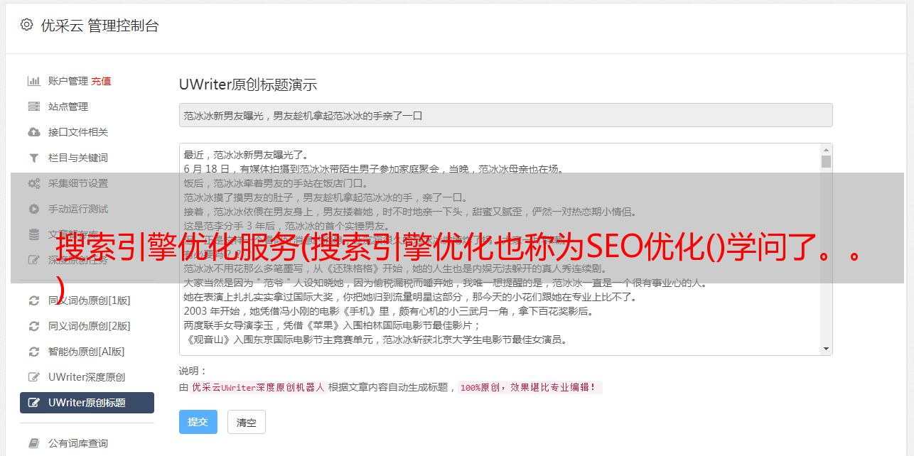 优采云 发布时间: 2021-11-10 15:14搜索引擎优化服务(搜索引擎优化也称为SEO优化()学问了。。