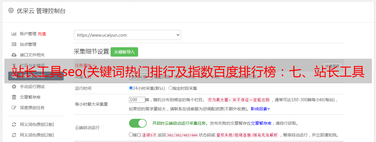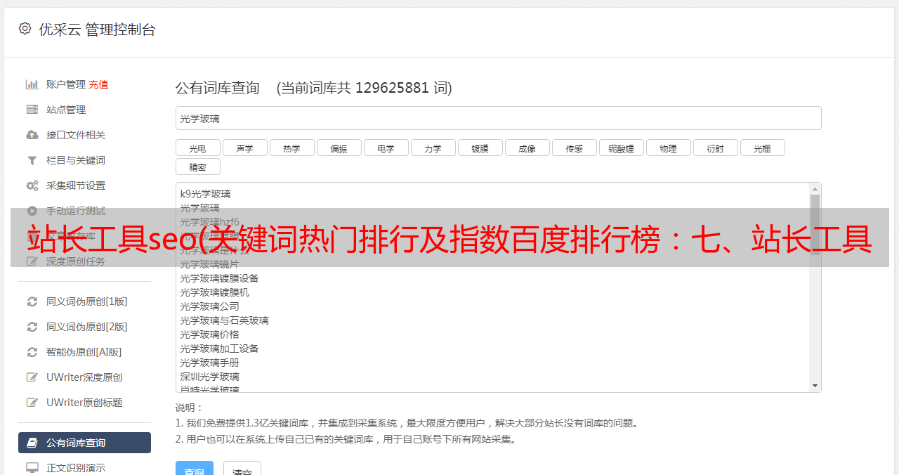 优采云 发布时间: 2021-11-10 23:18站长工具seo(关键词热门排行及指数百度排行榜:七、站长工具:八、网站流量统计工具)