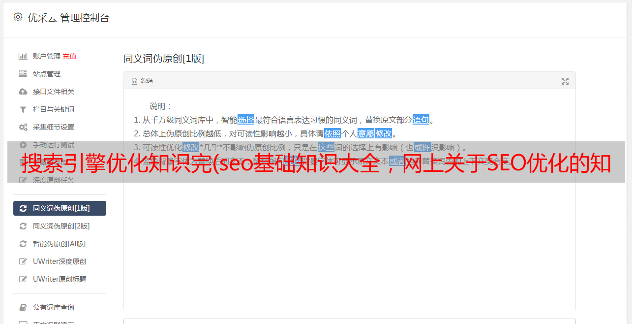 优采云 发布时间: 2021-11-11 00:19搜索引擎优化知识完(seo基础知识大全,网上关于SEO优化的知识很多也很杂)