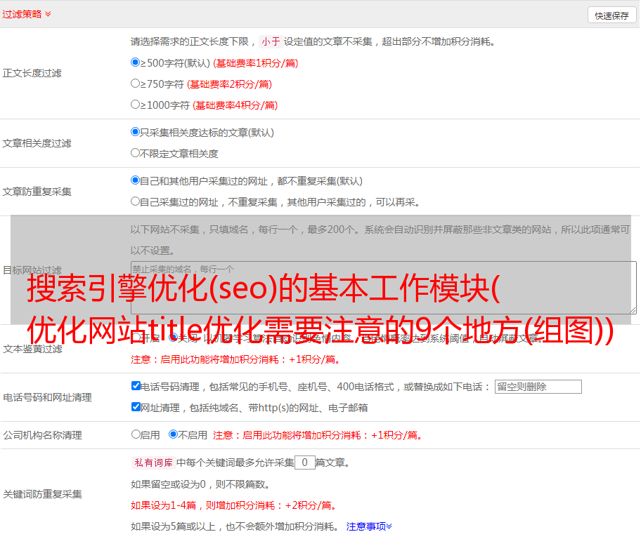 搜索引擎优化(seo)的基本工作模块( 优化网站title优化需要注意的9个地方(组图))
