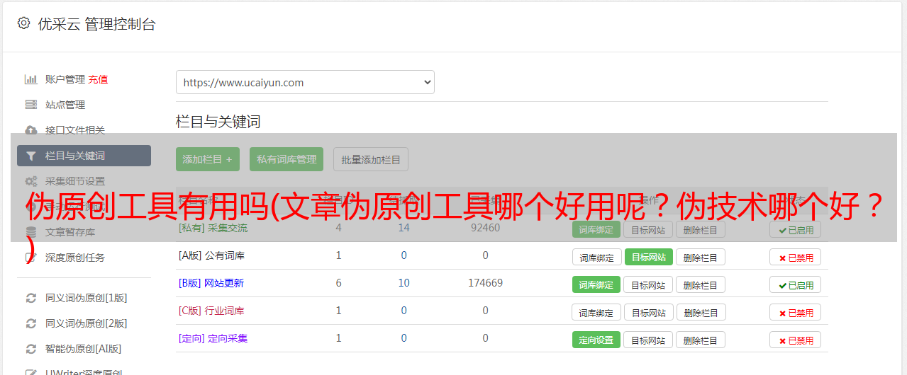 3、优采云伪原创:优采云是一个基于人工智能技术的智能内容创作平台。使用NLP中文词库和语言模型人工智能修改原创文章生成伪原创。