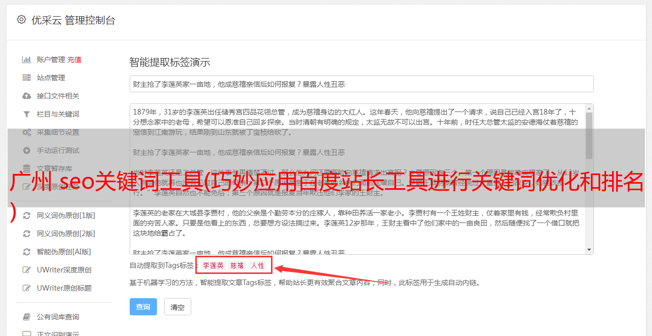 优采云 发布时间: 2021-11-11 02:18广州 seo关键词工具(巧妙应用百度站长工具进行关键词优化和排名