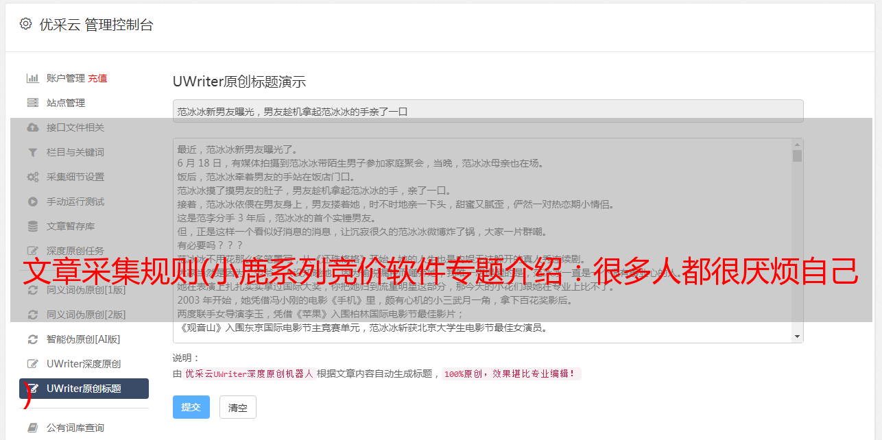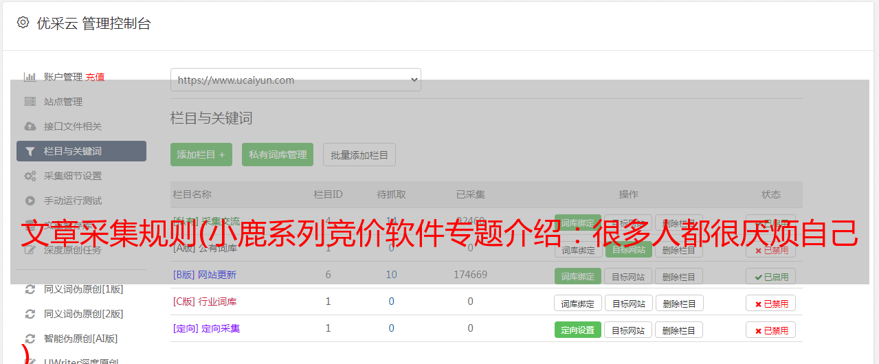 优采云 发布时间: 2021-11-11 03:01文章采集规则(小鹿系列竞价软件专题介绍:很多人都很厌烦自己