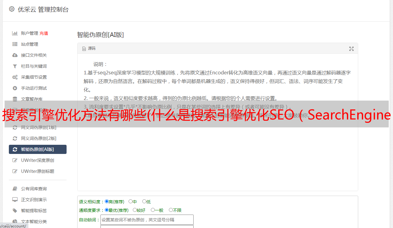优采云 发布时间: 2021-11-11 04:01搜索引擎优化方法有哪些(什么是搜索引擎优化SEO(SearchEngineOptimization):汉译优化)