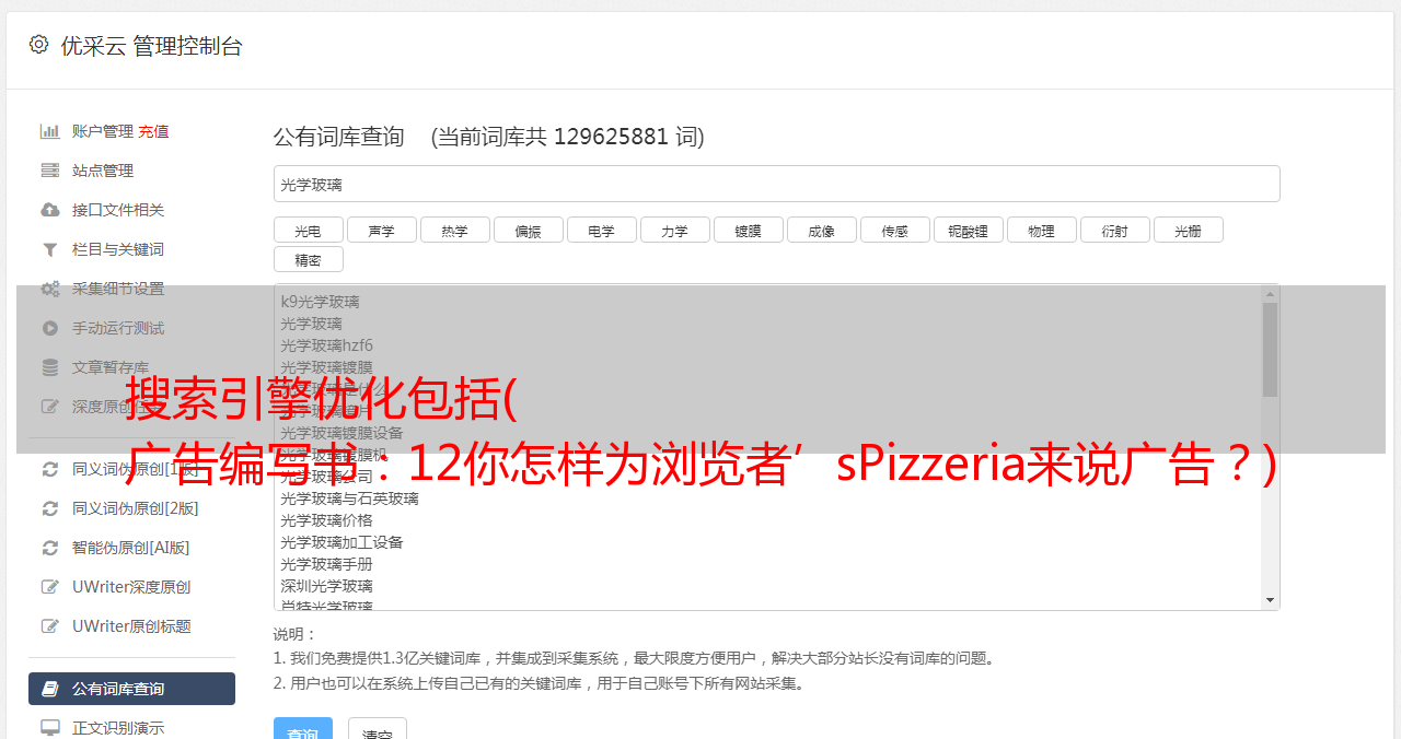 优采云 发布时间: 2021-11-11 04:23搜索引擎优化包括(