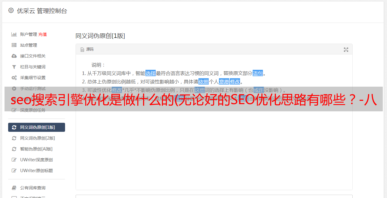 优采云 发布时间: 2021-11-11 11:08seo搜索引擎优化是做什么的(无论好的SEO优化思路有哪些?-八维教育)