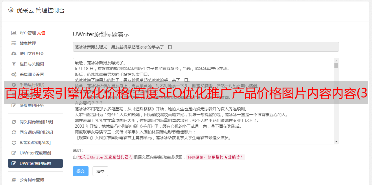 百度搜索引擎优化价格(百度SEO优化推广产品价格图片内容内容(3)友好体验 )