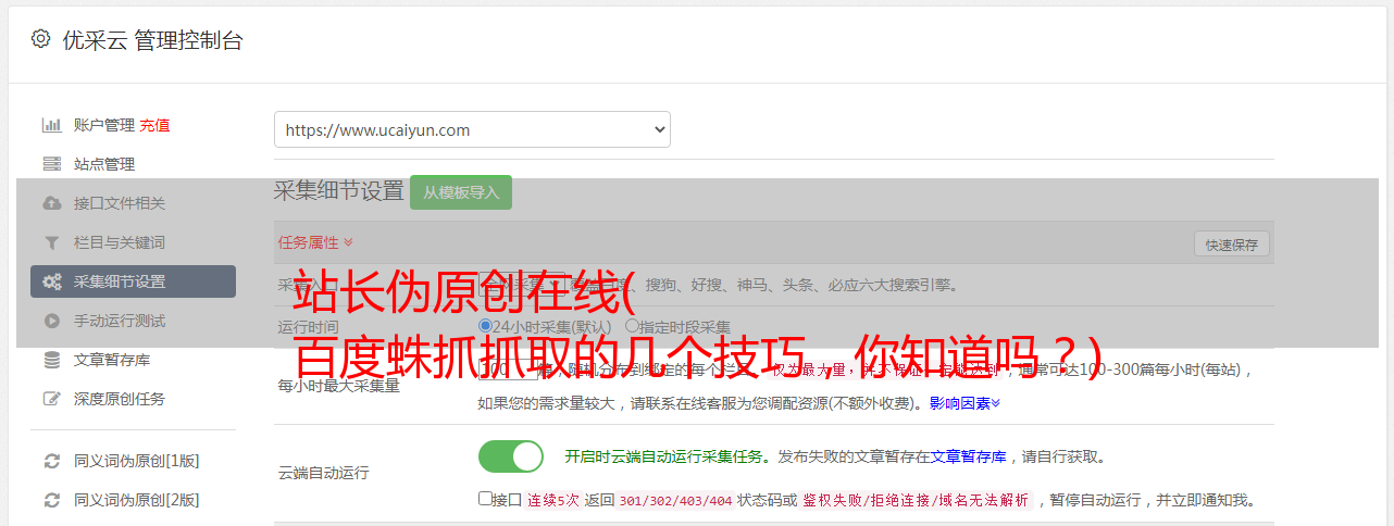 优采云 发布时间: 2021-11-11 15:25站长伪原创在线(