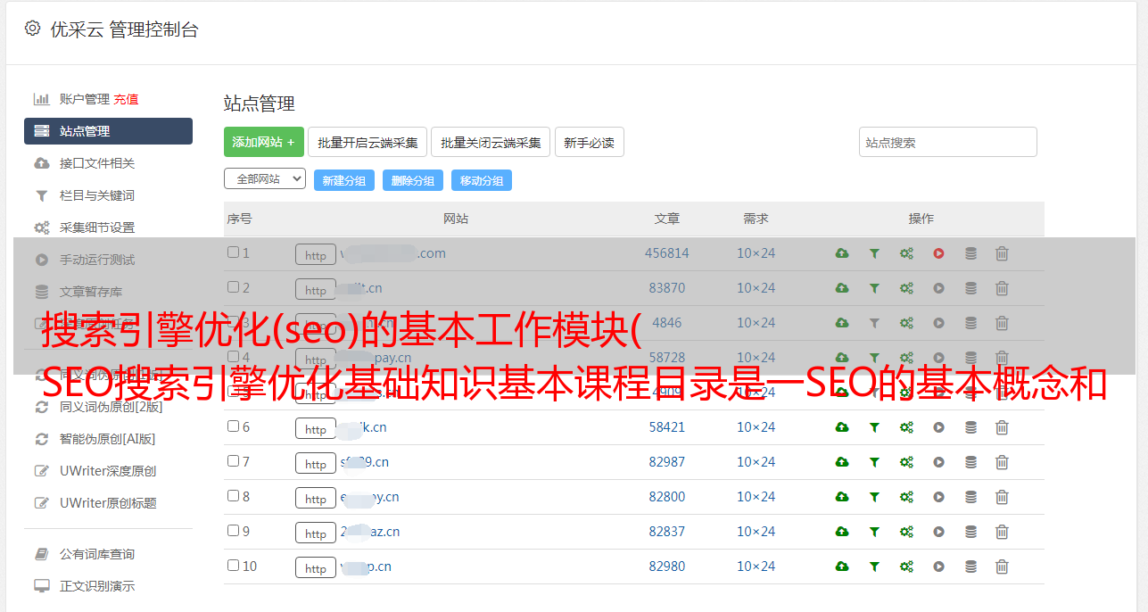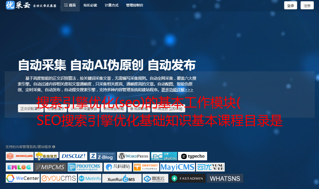 优采云 发布时间: 2021-11-11 16:02搜索引擎优化(seo)的基本工作模块(