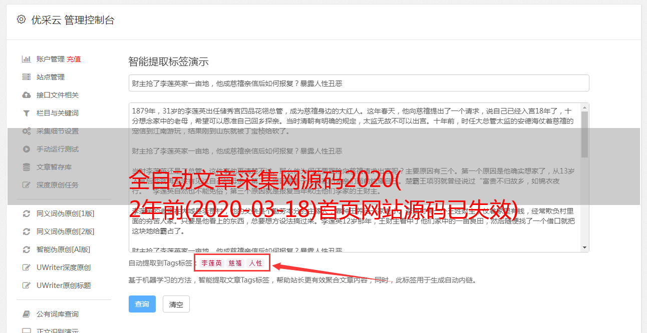 全自动文章采集网源码2020( 2年前(2020-03-18)首页网站源码已失效)