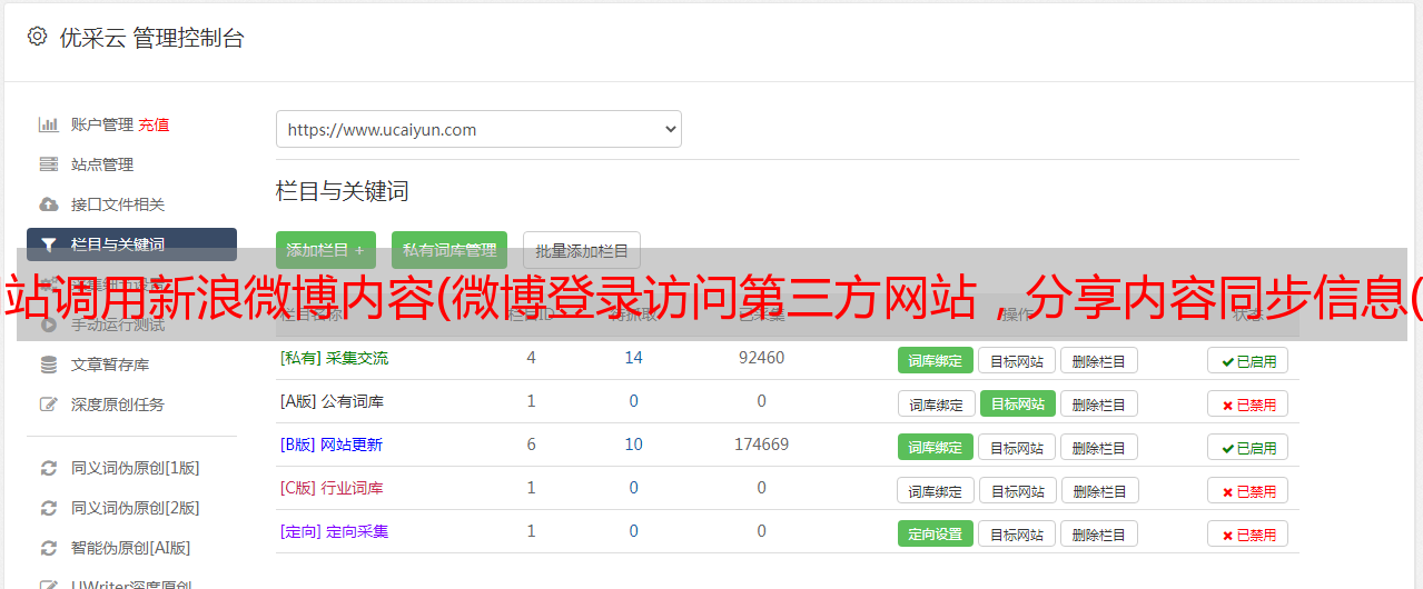 优采云 发布时间: 2021-11-11 20:14网站调用新浪微博内容(微博登录访问第三方网站,分享内容同步信息(图)