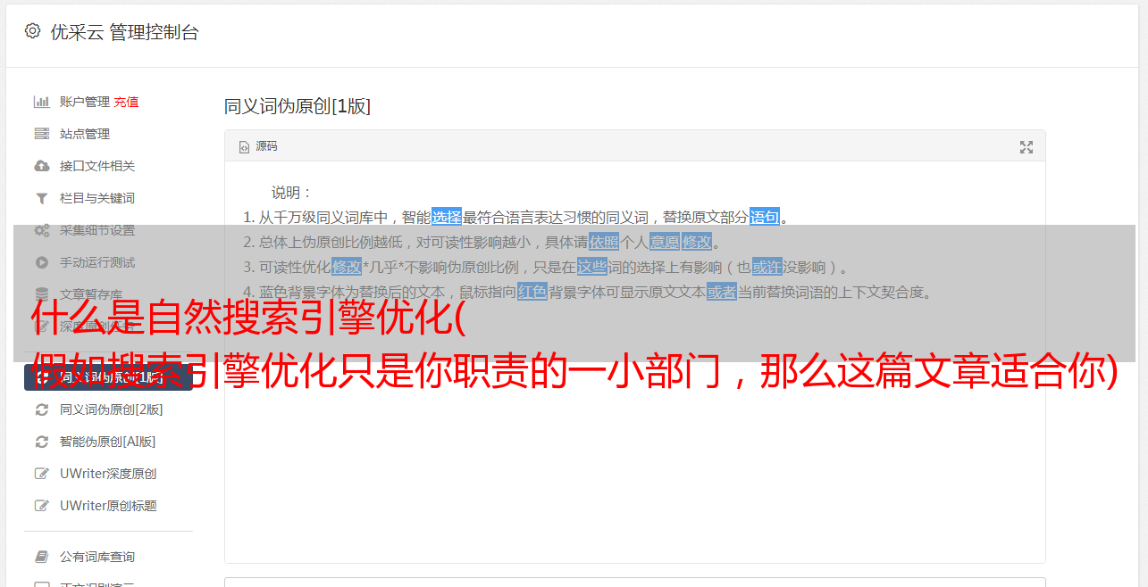 优采云 发布时间: 2021-11-11 20:17什么是自然搜索引擎优化(