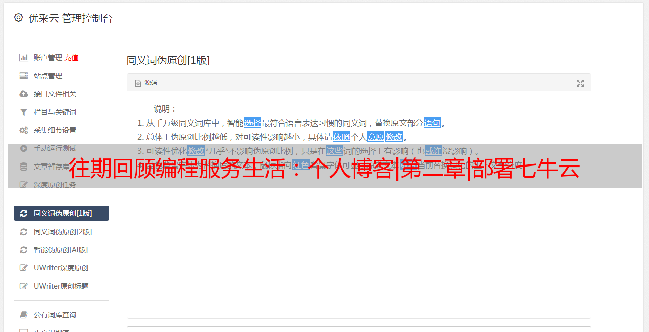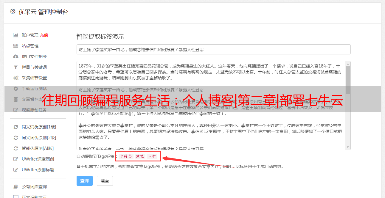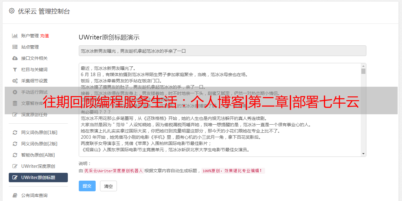 优采云 发布时间: 2021-03-28 01:09往期回顾编程服务生活:个人博客|第二章|部署七牛云