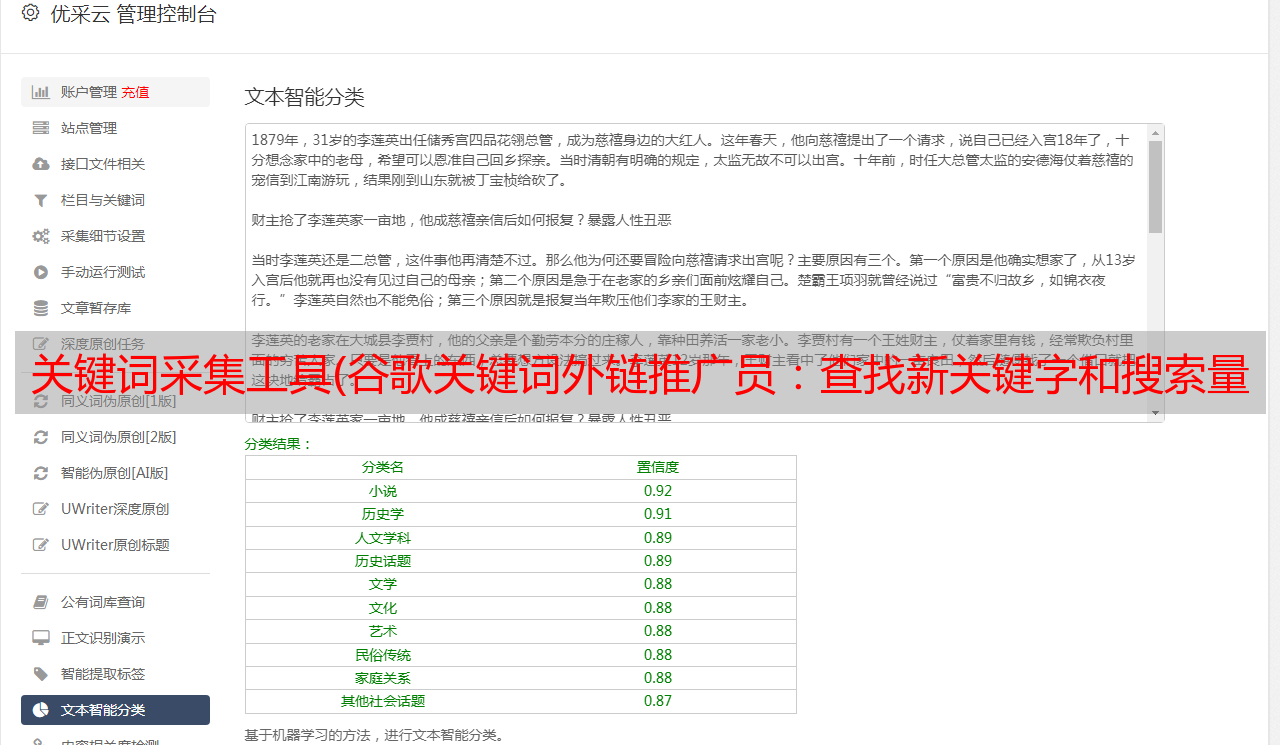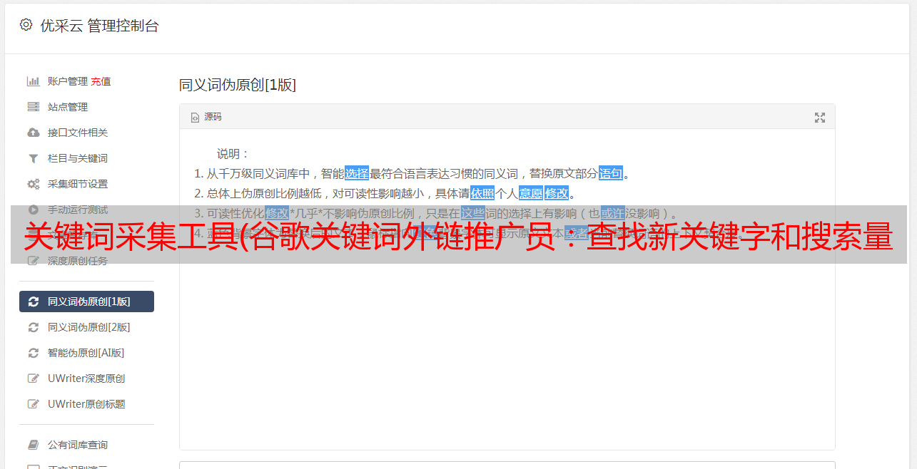 优采云 发布时间: 2021-11-12 08:04关键词采集工具(谷歌关键词外链推广员:查找新关键字和搜索量和预测数据)