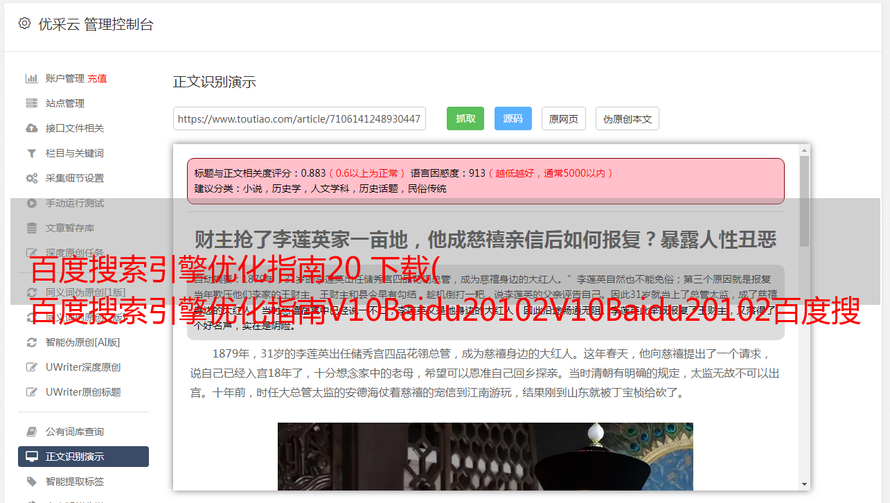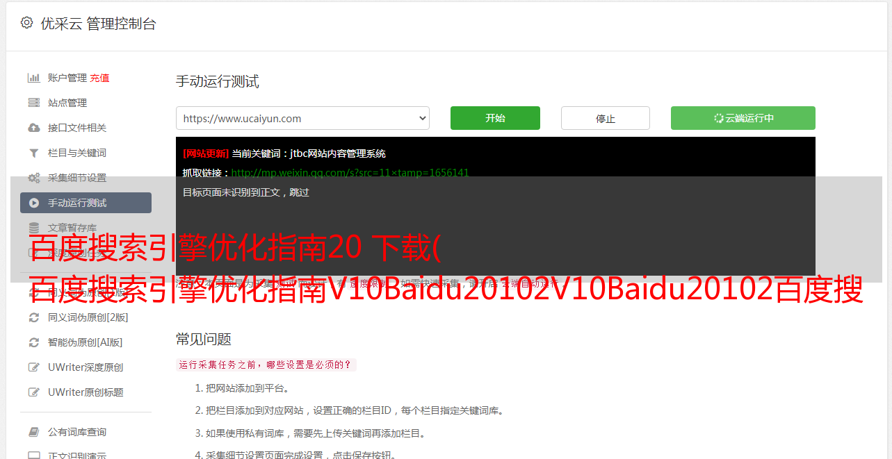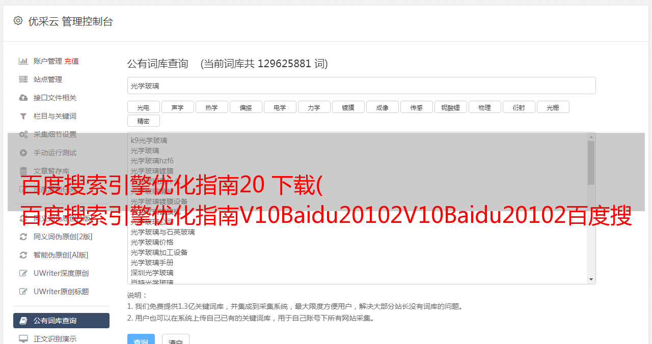 优采云 发布时间: 2021-11-12 08:21百度搜索引擎优化指南20 下载(