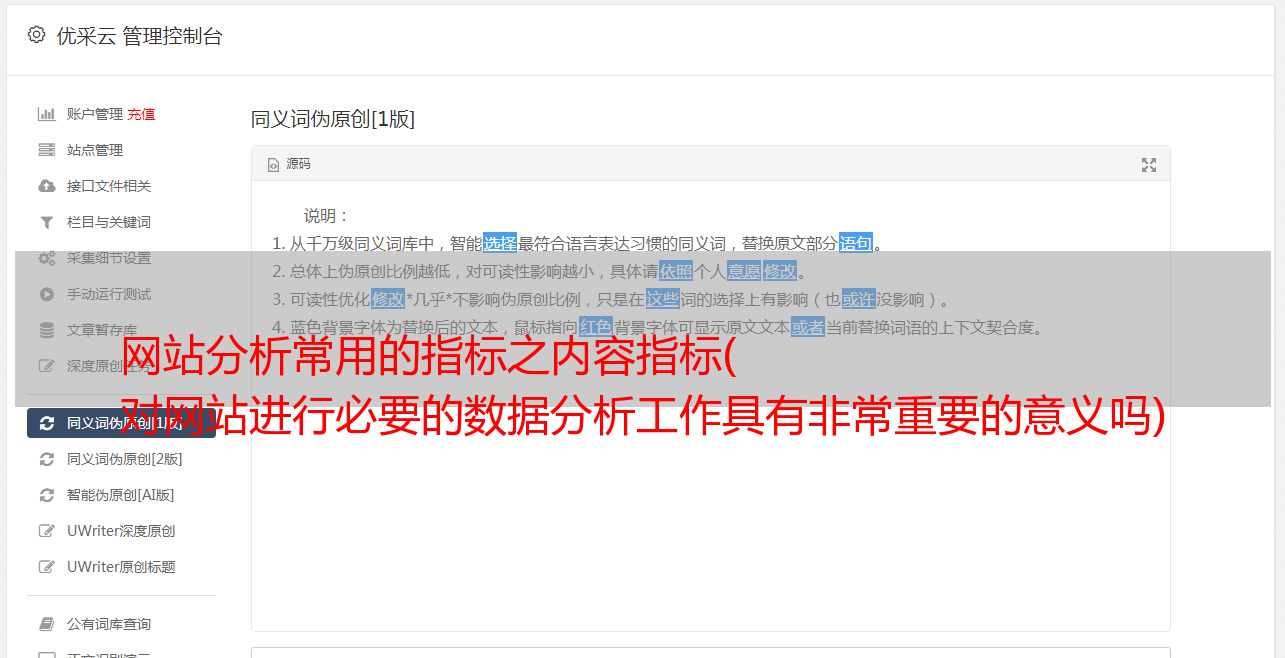 优采云 发布时间: 2021-11-12 10:09网站分析常用的指标之内容指标(