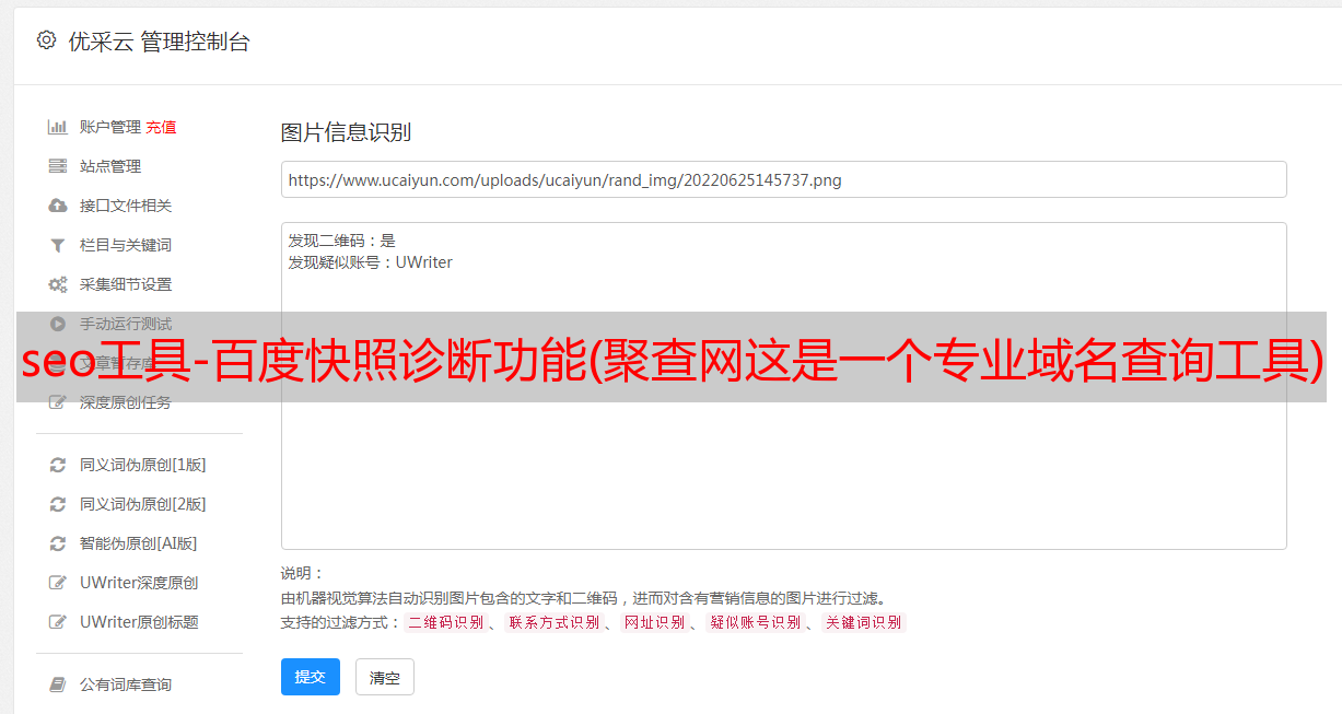 优采云 发布时间: 2021-11-12 10:13seo工具-百度快照诊断功能(聚查网这是一个专业域名查询工具)