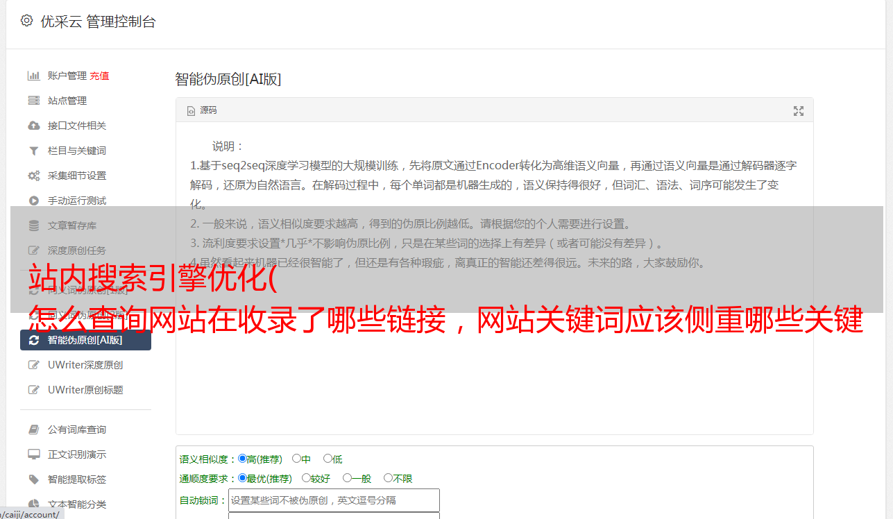 优采云 发布时间: 2021-11-12 11:20站内搜索引擎优化(