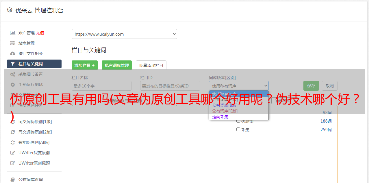 3、优采云伪原创:优采云是一个基于人工智能技术的智能内容创作平台。使用NLP中文词库和语言模型人工智能修改原创文章生成伪原创。