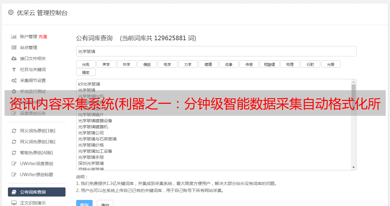 优采云 发布时间: 2021-11-12 17:04资讯内容采集系统(利器之一:分钟级智能数据采集自动格式化所关注的网站新闻、客户端新闻)