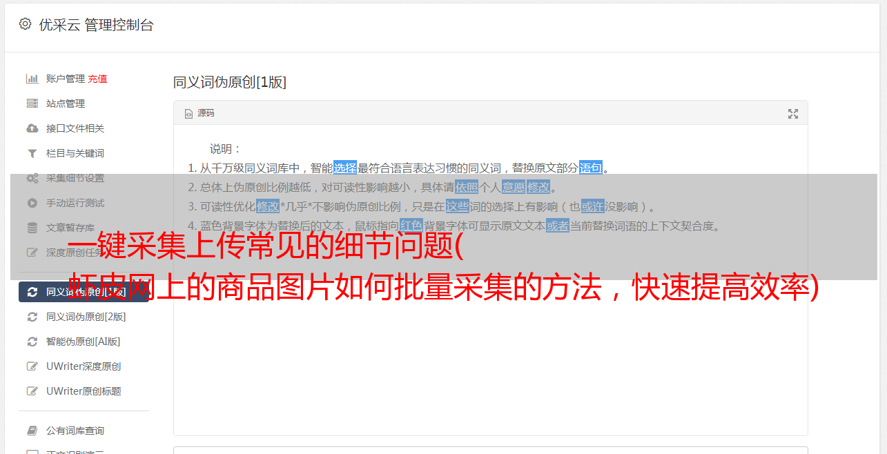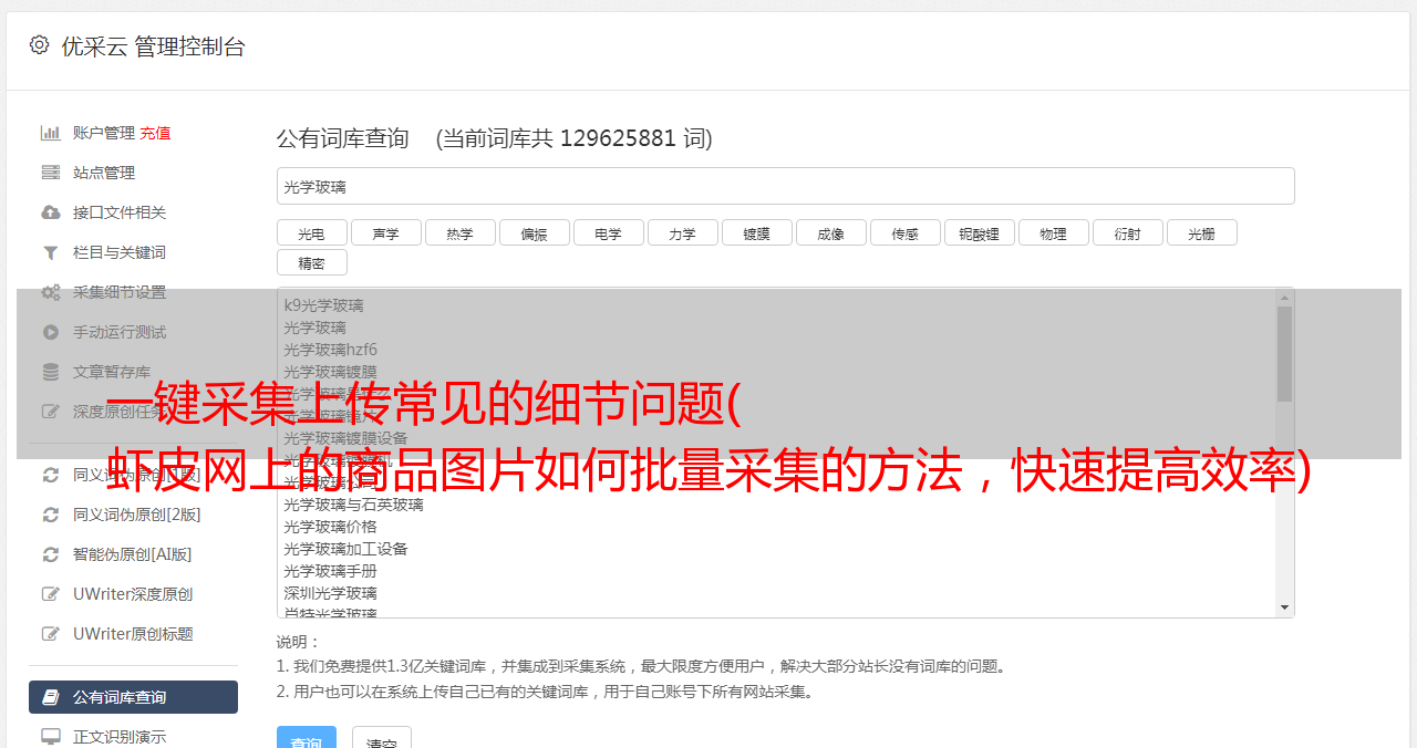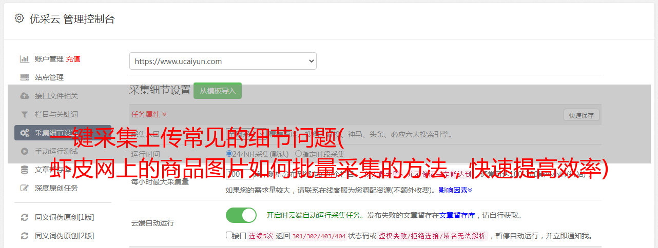 优采云 发布时间: 2021-11-12 18:12一键采集上传常见的细节问题(