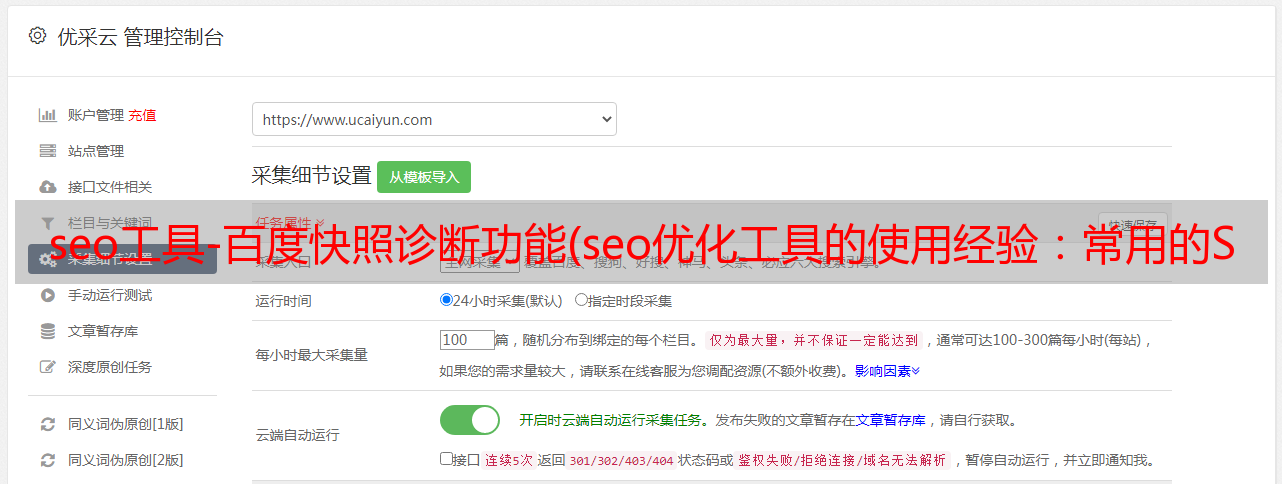 优采云 发布时间: 2021-11-12 23:03seo工具-百度快照诊断功能(seo优化工具的使用经验:常用的SEO查询工具有以下三种)