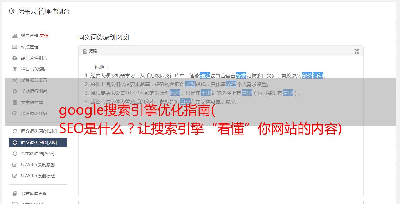 优采云 发布时间: 2021-11-13 00:11google搜索引擎优化指南(