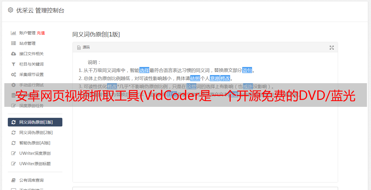 优采云 发布时间: 2021-11-13 01:04安卓网页视频抓取工具(VidCoder是一个开源免费的DVD/蓝光视频抓取和转码软件)