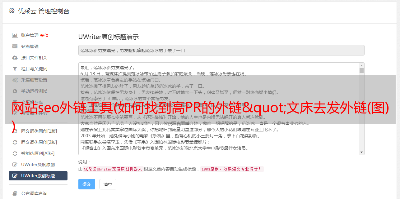 优采云 发布时间: 2021-11-13 04:23网站seo外链工具(如何找到高PR的外链"文床去发外链(图)